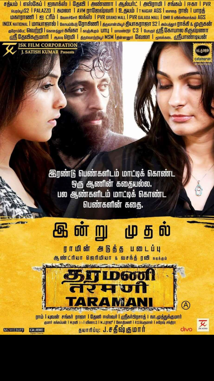 With a screechy script, relevant narration to some irrelevant depictions, some fresh cinematography and stellar performances from the lead actors, ‘Taramani’ is a watchable film.